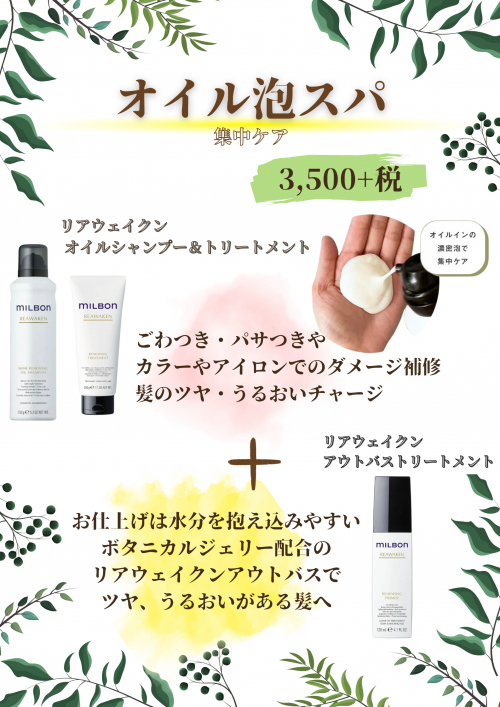 ミルボン【リアウェイクン】を使った集中ケアが本日から新メニューとして追加されました!